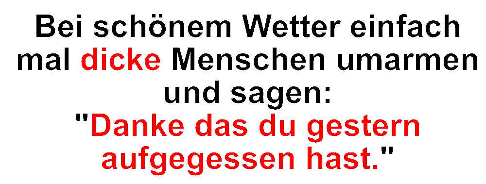 Endlich wieder warm, schön und viel warm, Sonne pur da kommt doch direkt Freude auf. Ich mag es, wenn es schön warm ist. Besser als Regen oder Kälte. Es gibt jedoch auch Menschen die mit diesem Wetter nichts anzufangen wissen. Sicher gibt es auch solche, die viel Wärme nicht vertragen. Schwitzen und auch Atemnot ist dann bei denen nicht selten. Ja jedem recht machen ist kaum möglich. Jetzt mal sehen, wie lange wir von diesem super Wetter profitieren können und nicht so schwitzen wie dieser Typ. Ich sagte doch Tauwetter für Dicke.