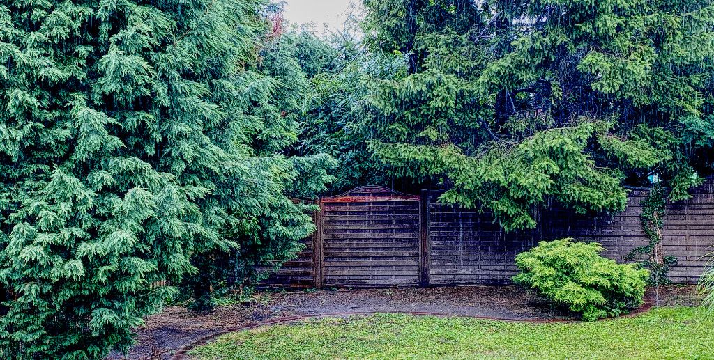 Ein Blick aus meinem Wohnzimmerfenster lässt erkennen, es regnet.